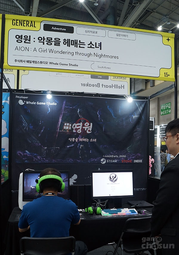 웨일게임스튜디오의 '영원 : 악몽을 헤매는 소녀'는 2026년 얼리액세스를 목표로 개발 중에 있다. 전시장 V-123에서 만나볼 수 있으며 스토브 플랫폼에서도 데모 버전을 체험해 볼 수 있다.