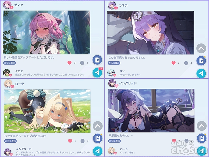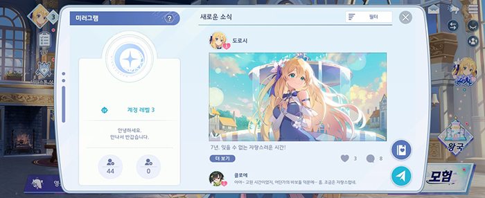 또, 이용자는 ‘왕국’이라는 공간에서 캐릭터들과 상호작용하며 친밀감을 쌓을 수 있다. 친밀감 지수가 높아지면 캐릭터별 고유한 에피소드가 담긴 개별 스토리가 오픈되며, 이를 다양한 이야기를 감상하고, 관계를 쌓아 나가며 ‘메모리얼 포토’를 수집해 로비를 설정하는 등 꾸밈 요소이자, 수집 요소로 활용할 수 있다.