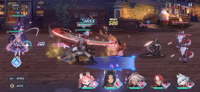 5인 파티에 전열, 중열, 후열이 있고, 각 캐릭터마다 포지션과 속성 상성, 스킬 시너지가 있으므로 여러 면을 고려해서 파티를 구성하고, 적재적소 스킬 명령을 내리는 것이 핵심입니다.