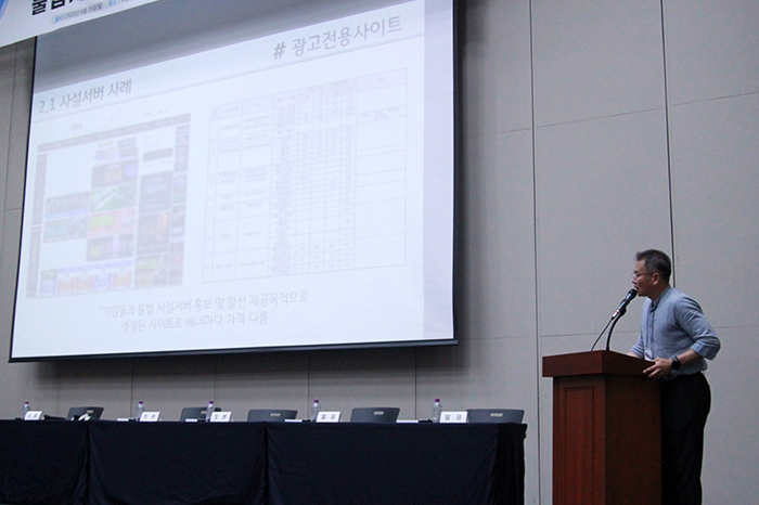 김 본부장은 “불법 사설 서버 제작·유포자는 게임산업법 제32조에 따라 5년 이하의 징역 또는 5000만원 이하의 벌금에 처할 수 있으나 실제로는 1~2년의 징역형이나 집행유예에 그친다”며 “수익 규모 대비 처벌 수위가 낮아 재범 사례가 다수 확인된다”고 말했다. 또한 “불법 사설서버 홍보를 통해 수익을 창출하는 악순환의 고리가 있다”며 운영자뿐 아니라 개발, 홍보 파트에 대한 수사 범위 확대 필요성을 강조했다.