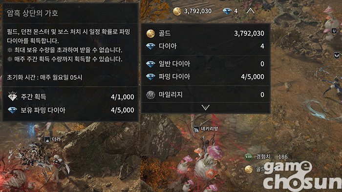 MMORPG에서 핵과금 게이머들을 만족시킬 BM만큼이나 중요한 것이 무소과금 게이머의 생존이다. '다중접속'을 강조한 장르인 만큼 게이머의 대다수를 차지하는 무소과금 게이머가 많이 남았을 때 장르적 재미가 극대화되기 때문이다. 넷마블은 이러한 부분을 '파밍 다이아' 같은 '재화 지원'으로 보강하고 있다.