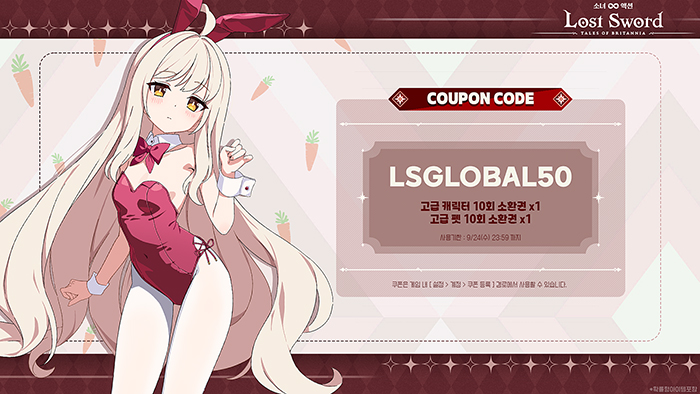또, 깜짝 쿠폰(LSGLOBAL50)으로 '고급 캐릭터 10회 소환권', '고급 펫 10회 소환권'을, 따스한 가을 기념 깜짝 쿠폰(WELCOME2LTSD)으로, '다이아 1,000개', '고급 캐릭터 10회 소환권x1', '고급 펫 10회 소환권x1'을 공개했습니다.