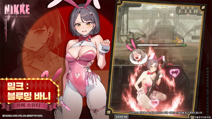 레벨인피니트가 서비스하고, 시프트업이 개발한 미소녀 건슈팅 RPG '승리의 여신: 니케'가 9월 4일 진행될 바니걸 이벤트 '코드: 바니, 날 잡아봐' 업데이트의 주역 '밀크 : 블루밍 바니'의 사격 자세와 스킬 정보를 공개했습니다.