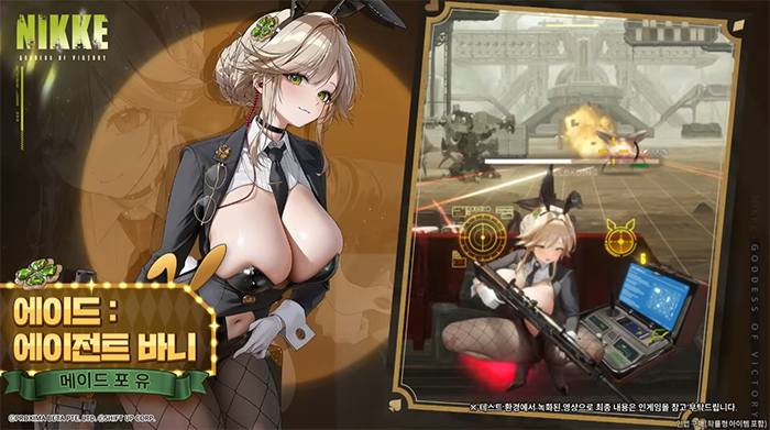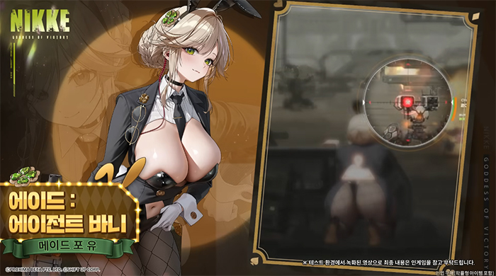 레벨인피니트가 서비스하고, 시프트업이 개발한 미소녀 건슈팅 RPG '승리의 여신: 니케'가 9월 4일 예정된 바니걸 시즌 이벤트에 등장하는 '에이드 : 에이전트 바니'의 사격 자세와 스킬 정보를 공개했습니다.