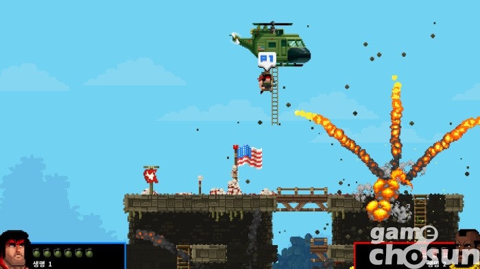 '람보 2'나 'A 특공대' 같은 80년대 블록버스터를 다시 보면 지금은 보기 힘든 '쌈마이함'을 느낄 수 있죠. 정의로운 미국이 악의 축인 제3세계에 쳐들어가 마구 때려 부수면 이젠 논란 그 자체가 될 것입니다. 하지만 가끔은 이렇게 뇌 빼고 감상할 수 있는 콘텐츠가 땡길 때도 있는 법이죠. 다른 게임의 주인공들이 열 마디를 논할 때 총알을 하나라도 더 먹여주는 마초 끝판왕 게임, '브로포스'입니다.