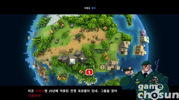 이 게임의 가장 큰 특징은 그 시절 감성을 자극하는 캐릭터들입니다. 마초 영화 주인공의 대표격인 '람브로'는 물론 냉혹한 집행관 '브로 드래드', 강철 육체를 가진 '브로보캅', 채찍을 휘두르며 종횡무진 맵을 누비는 '인디아나 브론스'까지 영화를 좀 봤다고 자부하는 분들이라면 유쾌한 패러디 캐릭터에서 웃음을 참기 어려우실 것입니다. 게이머는 미션을 진행하면서 인질을 구하고, 앞서 말한 다양한 브로를 사용해 볼 수 있죠.