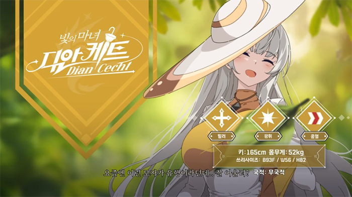 '디안 케트'는 아군 기사를 지원하는 광휘 속성 중열, 힐러 캐릭터입니다. 액티브 스킬로 자신을 제외한 아군에게 보호막을 둘러 피해를 막아주고 피해를 감소시키는 효과를 가지고 있습니다.