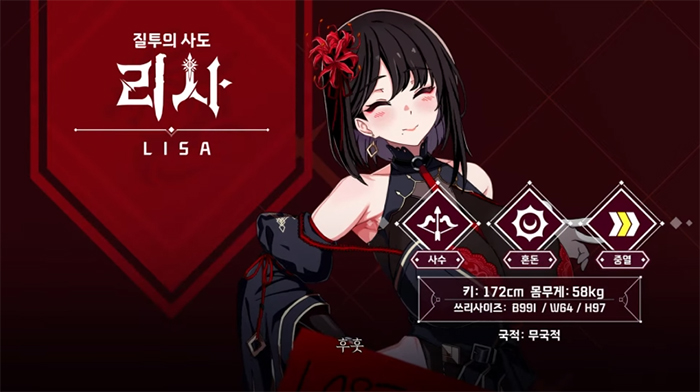 '리사'는 혼돈 속성, 중열, 사수로 말 그대로 퓨어 딜러 역할을 수행하는 캐릭터입니다.