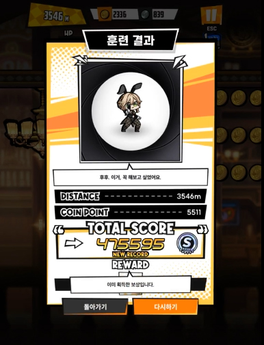 실제 플레이 영상과 함께 그가 선보인 기록은 무려 47만 점으로 총 거리는 3,546m에 획득 코인 포인트 5,511개로, 사실 이번 미니 게임은 2,500 미터가 넘어가면 바닥도 사라지고 무한 점프 늪에 빠지게 되는데, 이 시점부터는 일단 에이드 본인이거나, 바니걸 코스프레를 했거나, 탈인간급 반응 속도를 지닌 지휘관이 아니라면 달성하기 힘든 점수입니다.