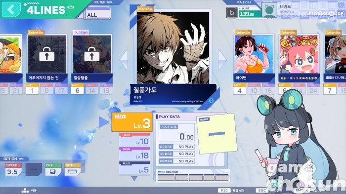 물론 오리지널 수록곡도 상당히 좋습니다. 단순히 노래뿐만 아니라 노트 배치도 재밌다고 할까요? 20레벨을 못 넘기는 뉴비 기자로는 판단이 안되어서 리듬 게임을 좋아하는 후배(32세 여친 구함)에게 플레이를 시켰더니 손맛이 좋다고 합니다. 리듬 게임 청정수부터 고인물까지 듣는 맛과 치는 맛 모두 만족했단 평가를 전해드립니다.