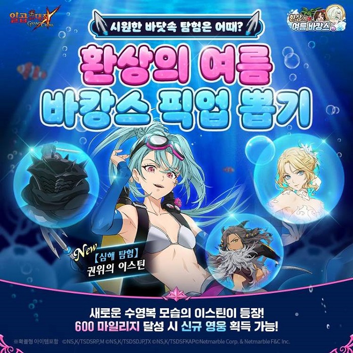 넷마블은 자사의 모바일 RPG '일곱 개의 대죄:그랜드 크로스'의 11일 업데이트를 통해 신규 영웅 '【심해 탐험】 권위의 이스틴 (이하 심해 이스틴)'을 추가하고 '환상의 여름 바캉스' 2부 이벤트를 개최했다.