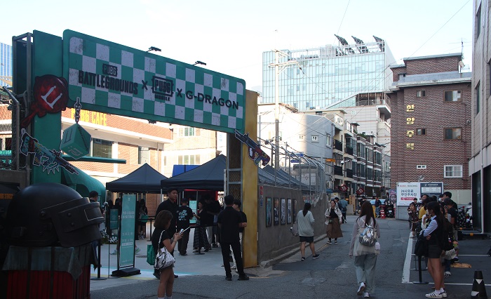 아래는 펍지 성수에서 펼쳐진 '펍지 X 지드래곤' 특별 행사의 전경이다.