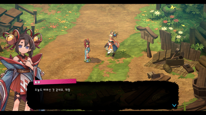Q. 게임의 핵심 콘텐츠는 전투와 마을 성장 크게 두 가지로 구분할 수 있을 것 같다. 아무래도 전투에 비해 마을 성장은 다소 찬밥 신세가 될 것 같다. 할 게 많으면 많은 대로, 적으면 적은 대로 문제인데 전투와 마을 성장의 비중은 대략 어느 정도인지, 그리고 마을에서는 어떤 것들을 할 수 있는지?