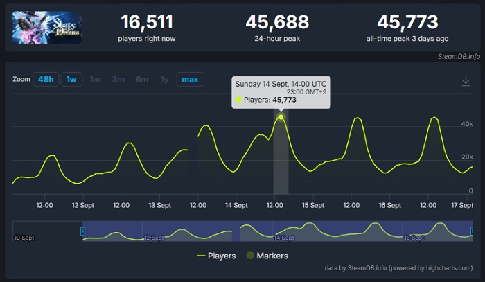 지난 11일 네오위즈를 통해 정식 발매가 이뤄진 신작 로그라이크 셰이프 오브 드림즈는 최다 동시 접속자 수 45,000명을 돌파한 데 이어, 스팀 9월 둘째주 최다 판매 게임 글로벌 10위, 한국 4위에 오르며 최고 인기작 반열에 오르는 모습을 보여줬다.