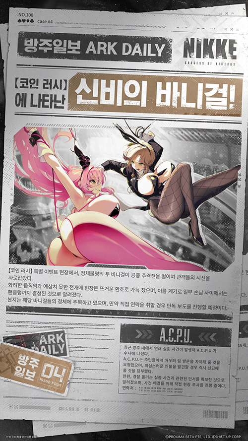 1면의 헤드라인 내용은 이미 한창 진행 중인 바니걸 이벤트 'COINS IS RUSH'의 주요 사건이 차례로 실리고 있지만, 사실 더 주목할 부분은 하단의 '사람을 찾습니다' 지면으로, 바니걸 이벤트가 진행되고 있는 지금 이 순간에도 매일 방주 내에서 사람이 실종되고 있음을 알 수 있습니다.