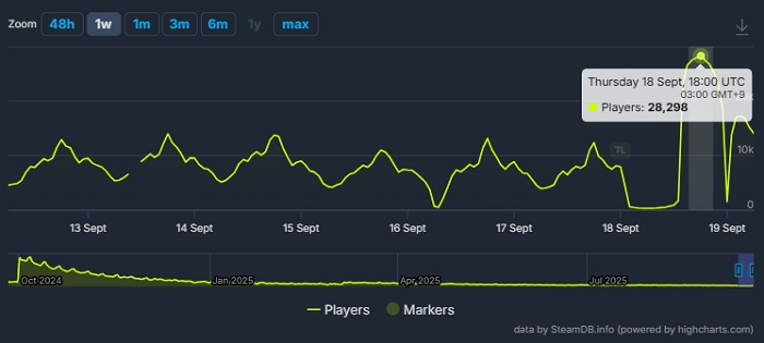 이와 더불어 대규모 업데이트 '뉴 웨이브(NEW WAVE)'에 힘입어 스팀 글로벌 최다 판매 순위가 69계단 상승하면서 22위를 기록했다. 이는 MMORPG 장르 타이틀 중 가장 높은 순위다. 동시접속자 수 역시 반등했다. 한국 시각으로 9월 19일 최다 동접자 약 30,000명을 달성하면서, 지난 한달 간의 평균 동접자에 비해 2배 가량 증가하는 모습을 보여줬다.