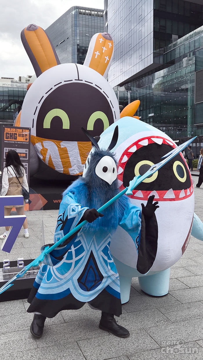 거대한 이아스 구조물 아래에 있는 컨테이너 박스에서는 현장을 찾아온 젠레스 존 제로 코스튬 플레이어들이 멋진 모습을 뽐냈으며 체험존을 돌아다니는 샤크부 인형탈은 특유의 귀여움으로 젠레스 존 제로의 팬들 뿐만 아니라 다른 게임의 코스튬을 입고 온 사람들과 지나가던 어린이들의 사랑을 한몸에 받는 모습을 확인해볼 수 있었다.