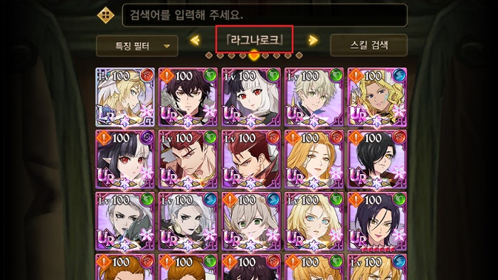 실제로 영웅 검색 UI에서 필터를 '특징'으로 설정하고 다섯 번째 탭으로 목록을 넘기면 『라그나로크』로 필터링이 이뤄집니다. 또 속성 필터로 설정해 다섯 번째 탭에 위치하면 '빛' 속성 영웅이 등장하며, 종족 필터에서는 '요정족' 값이 나옵니다. 속성 필터는 6개 탭, 종족 필터는 7개인 만큼, 단서 상에서 등장하는 UI 일치하는 것은 특징 필터가 확실하며 이는 곧 『라그나로크』특징 영웅이라는 것을 확실시하고 있습니다.