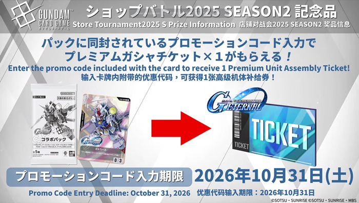 지터널 외에도 건담 카드 게임의 특전도 포함되어 있기 때문에 관련 내용은 건담 카드 게임 홈페이지에서 찾아보는 것이 좋다