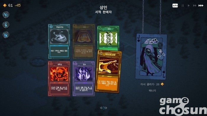 시작할 때 고른 왕은 바꿀 수 없지만, 카드는 그렇지 않습니다. 전투의 전리품이나 상인과 거래로 다른 왕의 카드를 사용할 수 있죠. 예를 들어 무의 왕으로 플레이하다가 상인에게 주문의 왕 카드인 도서관을 구입해 내실을 다지는 것도 가능합니다. 이렇게 한 땀 한 땀 빌드를 만들어 적들을 시원하게 쓸어버리는 재미가 꽤 쏠쏠합니다.