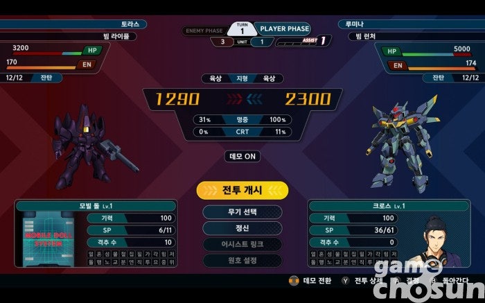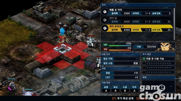 반면 아쉬운 부분도 있습니다. 우선 로봇 장르의 '낡은' 느낌에서 벗어나지 못했다고 할까요? 첫 전투가 시작되자마자 화면 아래쪽을 가리는 UI에 웃음이 나왔습니다. 보여줄 수 있는 정보를 다 보여주겠단 의욕은 알지만, 너무 정보가 많다고 할까요? 적용중인 정신기만 표기하고, 격추 수 같은 정보를 정리하면 더 깔끔할 것 같은데 말이죠.