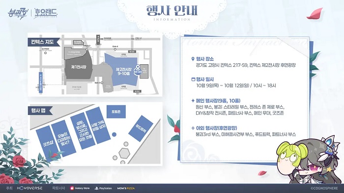 한편 '붕괴3rd'와 '미해결사건부'는 한정판 굿즈와 리딤코드를 증정하는 간단한 야외 부스 이벤트와 푸드존을 운영하며, 토요일과 일요일 오후 6시에는 호요버스의 모든 캐릭터를 한 자리에서 만나볼 수 있는 코스프레 퍼레이드가 10홀에서 펼쳐진다.