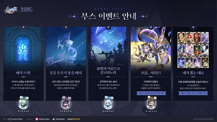 스타레일의 핵심 무대 이벤트는 '스타 심포니'다 게임 내에서 로빈이 부른 테마곡 앨범 'INSIDE', '만약 내가 태양을 본 적이 없다면'의 수록곡을 전부 담당한 싱어송라이터 'Chevy'와 앰포리어스 스토리 중 아퀼라의 신권 계승 의식에서 히아킨의 테마곡 '동트기 전'을 부른 'NIDA'가 라이브 콘서트로 팬들을 맞이하며 이들의 사인을 받을 수 있는 이벤트도 진행된다.