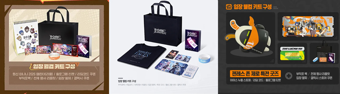 티켓 예매 과정에서 선택한 내용에 따라 웰컴 키트의 구성은 공통 사양인 입장팔찌, 호요랜드 부직포백, 전체 행사 리플릿(안내도)를 제외하면 조금씩 달라지지만 선택한 게임이 아닌 다른 게임의 행사 참여에는 전혀 문제가 없기 때문에 입장 후에는 자유로운 관람이 가능하다.