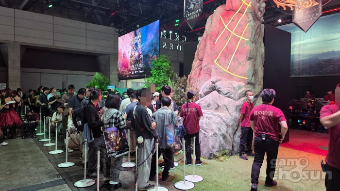 인상적이었던 부스가 또 있다. 바로 펄어비스의 '붉은사막'이다. 긴 개발 기간을 넘어 드디어 출시일을 밝힌 붉은사막은 국내 게임사 중 가장 긴 대기열, 3열로 모자라 벽까지 이어지는 대기열을 자랑했다. 서브컬쳐가 아닌 순수 액션 게임 비주얼로 게이머들의 관심을 끄는데 성공한 것이다.