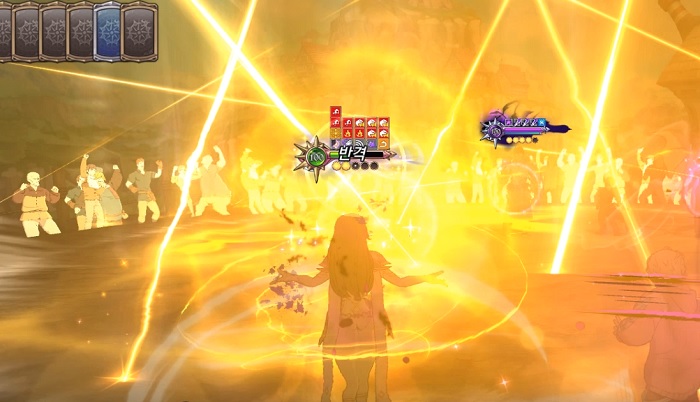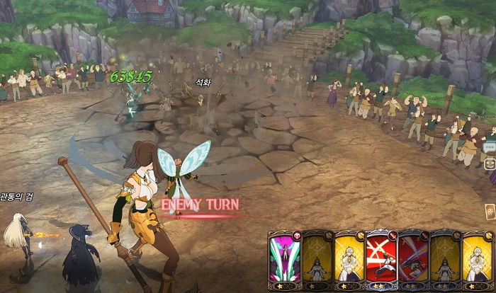 게다가 스쿨드 반격덱 입장에서는 마신덱의 압신왕 보호막 3개를 모두 제거하는 것이 불가능에 가까운데요. 진혼헬의 스킬을 모두 퍼부어도 보호막 게이지를 모두 까기엔 역부족인데다가, 스쿨드 및 발드르의 반격 스킬도 사용해야 하기에 카드 사용 슬롯도 모자라기 때문이죠.