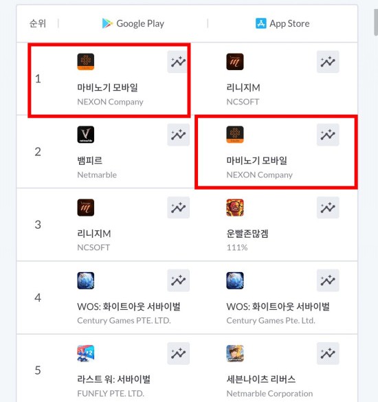 넥슨의 MMORPG '마비노기 모바일'이 대형 업데이트 이후 구글 플레이스토어 매출 1위, 애플 앱스토어 매출 2위를 달성했다.