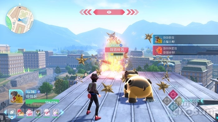 가장 큰 특징은 포켓몬 배틀이 실시간으로 이뤄진다는 것입니다. 트레이너를 조종하는 플레이어가 손을 바쁘게 움직이고 적절한 위치를 잡는 센스가 있다면 전투의 판도가 뒤집힐 수 있다는 소리죠. 랜덤 인카운터로 야생 포켓몬과 상대 트레이너가 공격을 걸어오던 예전과 달리 기습을 통해 유리한 고지를 점하고 배틀을 시작할 수도 있으니 기존과 확 달라진 배틀을 즐겨보고 싶은 분들에게는 놓쳐서는 안 될 타이틀이라고 결론내릴 수 있겠습니다.
