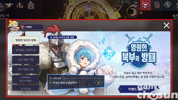 얼어붙은 심장의 땅은 스토리와 출석만 진행하면 보상을 얻을 수 있는 간단한 이벤트다. 전투 콘텐츠도 블루 크리스탈을 지급하므로 꼭 참여해 보상을 얻자.