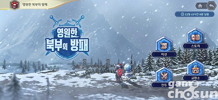 영원한 북부의 방패는 스토리와 미션, 전투에서 이벤트 재화를 모아 교환소에서 원하는 아이템으로 교환하는 이벤트다. 전투는 고기를 소모하긴 하지만 모든 스토리와 전투를 완료해야 희귀 보상을 대부분 얻을 수 있으니 성장을 위한 투자라고 생각하자. 단, 이벤트 전투는 경험치를 주지 않으니 고기 과투자는 삼가하자.