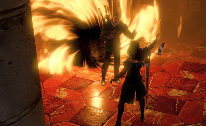 위쳐 세계관의 마법사와 마녀들은 암만 좋게 쳐줘도 '자유분방하다'고 포장될 정도로 문란한 것이 기본인 족속들이고 이는 게롤트 본인에게도 포함되는 내용이라 둘의 관계가 그렇게 애틋하게 묘사되지는 않지만, 적어도 예니퍼는 게롤트가 한눈을 팔면 불같이 화를 낼 정도로 진지하게 서로의 관계를 직시하는 반면 게롤트는 늘 그렇듯이 시덥잖은 농담 따먹기로 이를 무마하려다가 예니퍼의 마법으로 응징당하는 패턴을 반복하며 애증에 가까운 둘의 상황을 묘사하고 있죠.