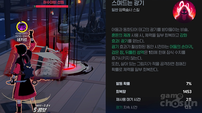 검은 창의 사용감도 개선됐다. 제물의 낙인 패시브 효과에 처치 시 발동이 추가되면서 재사용 대기 시간 감소 효과가 더 자주 발동해 검은 창의 사용 빈도가 늘어났으며, 강타와 카운터, 무방비 시 잠식 수치 감소 효과 삭제, 공격 범위 증가로 스며드는 광기가 아니라면 빙의 진입을 방해 받지 않고 수월한 전투를 벌일 수 있게 됐다.
