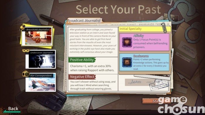 TRPG의 캐릭터 배경처럼 이 게임도 같은 캐릭터라도 배경에 따라 능력이 달라진다