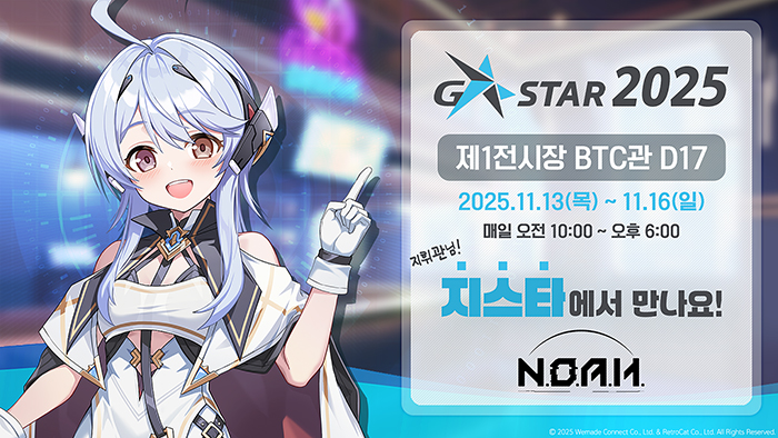 [자료제공 = 위메이드맥스] ㈜위메이드맥스(각자대표 손면석, 이길형)는 ㈜레트로캣(대표 이종범)이 개발하고 ㈜위메이드커넥트(대표 이호대)가 서비스하는 서브컬처 RPG 신작 ‘노아(N.O.A.H)’를 오는 11월 13일부터 16일까지 부산 벡스코에서 열리는 ‘지스타(G-STAR) 2025’에 첫 공개한다고 28일 밝혔다.