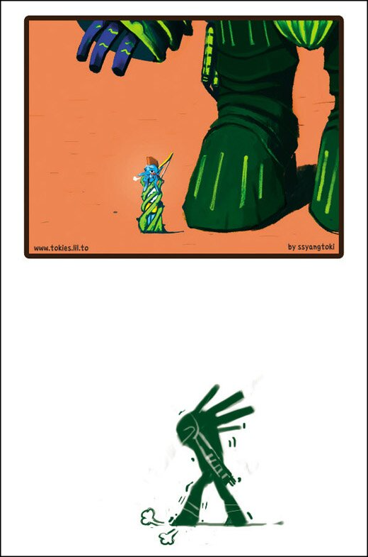 하지만 그런 거대한 적 캐릭터가 최종 보스의 지위를 가지고 있는 것이 아니라면 이야기는 달라집니다. 만화 '진격의 거인'에서도 난공불락의 괴생명체로 알려져 있던 거인들이 목덜미의 약점을 노리면 쉽게 죽일 수 있다는 사실이 널리 알려지고 병사들의 실력과 기술력이 상향평준화되면서 특수 능력을 가진 몇몇 주요 거인들을 제외하면 대부분 손쉽게 공략할 수 있는 대상이 되어버린 것처럼 게임 속에서도 계속 성장하는 플레이어들을 따라가지 못하고 싱겁게 사냥당하는 신세가 된 거대 보스들이 있습니다.