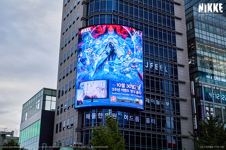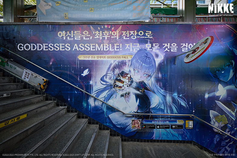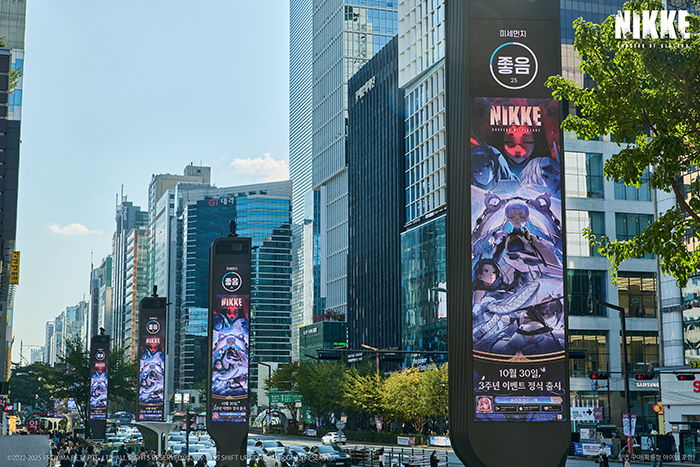 이밖에도 니케 3주년 이벤트에 맞춰 강남대로 및 홍대입구역 근처에서 필그림 어셈블, 최후의 전장으로의 집결을 콘셉트로 다양한 옥외광고를 진행 중입니다.