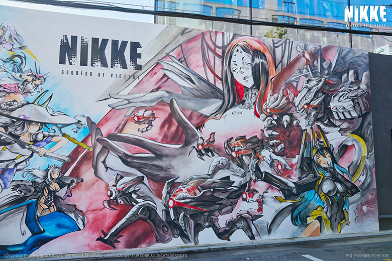 레벨인피니트가 서비스하고 시프트업이 개발한 미소녀 건슈팅 RPG '승리의 여신: 니케'가 이번 3주년을 기념하여 한국 동양화 작가 '신영훈' 님과 협업하여 '최후'의 전장 콘셉트의 수묵화 벽화를 성수역 인근 '무신사 엠프티 성수'에서 11월 13일(목)까지 전시를 진행 중입니다. 또 서울 강남대로와 홍대입구역 인근에서도 3주년 기념 옥외 광고를 진행합니다.