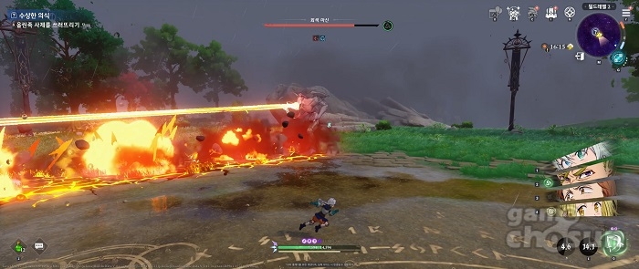 다만 마력을 충전하여 투척하는 마지막 대형 마력 폭탄은 폭발 범위가 넓기 때문에 대시를 사용하지 않으면 반드시 맞게되는 점을 주의하자.