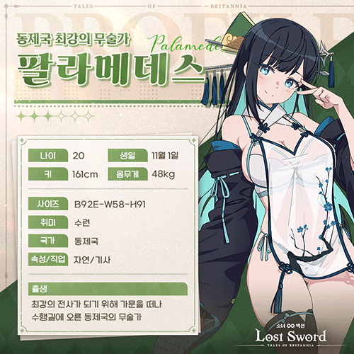 위메이드커넥트가 서비스하고, 코드캣이 개발한 모바일 서브컬처 RPG '로스트 소드'가 11월 13일 새롭게 선보일 신규 캐릭터 '동제국 최강의 무술가 팔라메데스'의 공식 PV와 프로필 정보를 공개했습니다.