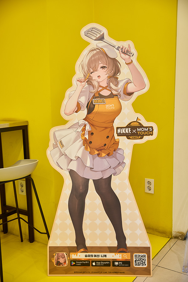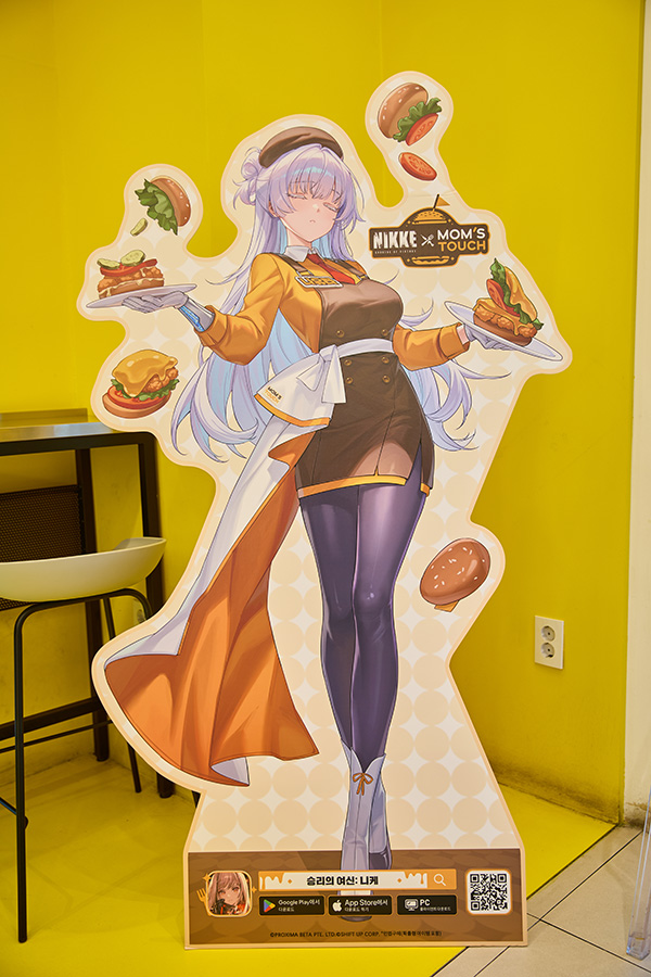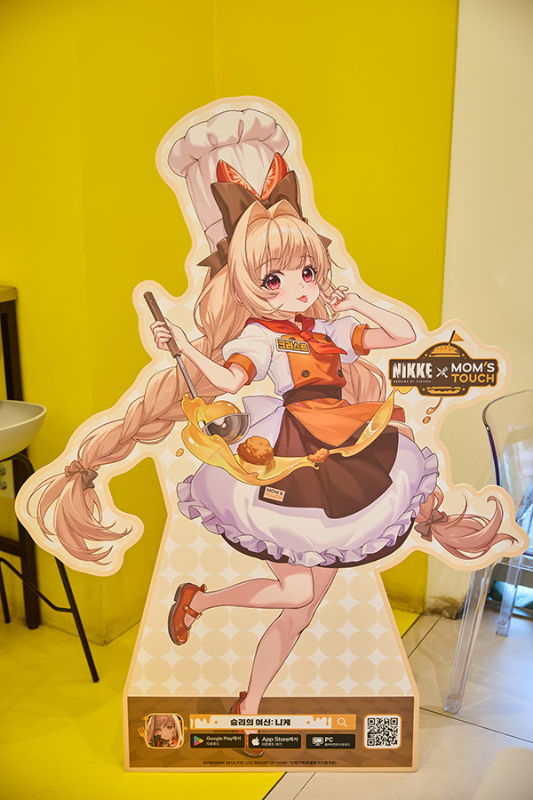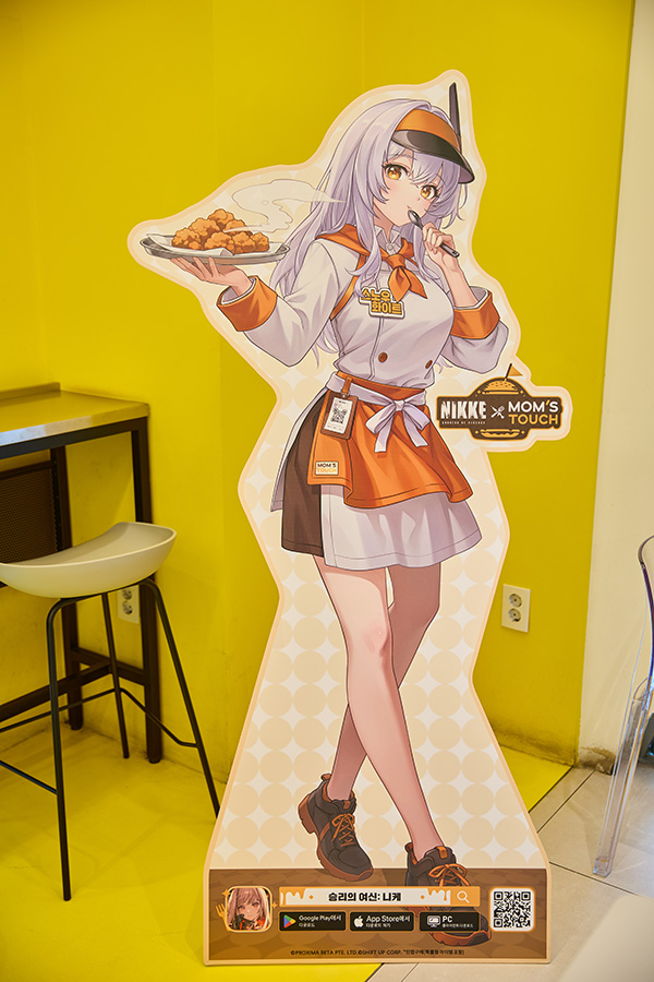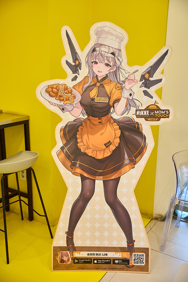 또, 이와 함께 일부 매장에서는 '승리의 여신: 니케'X'맘스터치' 콜라보를 기념한 신규 일러스트로 제작된 등신대와 '승리의 여신: 니케'의 분위기를 만끽할 수 있는 다양한 이미지와 영상, 특별 메뉴판을 만나볼 수도 있습니다. 이렇게 보니 '맘스터치'의 노란색 시그니처 컬러가 퀸 강림의 시름을 잠시 잊을 정도로 잘 어울리네요.