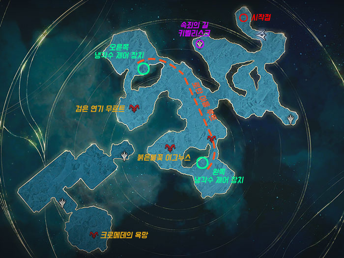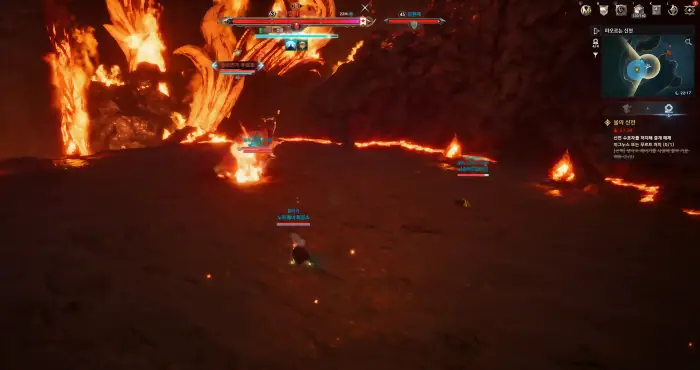 이외에도 던전 내 필드에 지속적으로 떨어지는 불덩이를 제거하기 위해 냉각수 제어 장치 2개를 조작해야 하는 기믹, 그리고 특정 루트로 빠르게 이동하는 네임드 몬스터 로탄 등 여러모로 신경써야 할 것이 많다.