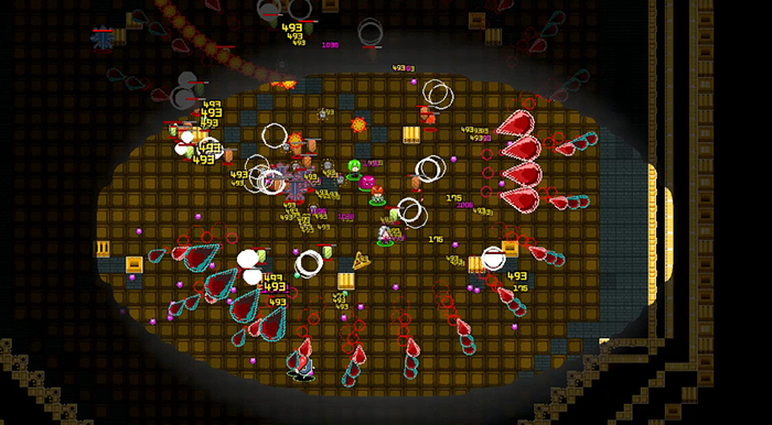 게임 내에서는 화면을 가득 채우는 화려한 스킬 이펙트와 사방에서 몰려오는 적들의 정신없는 탄막이 펼쳐진다. 이용자는 쉴 새 없이 터지는 공격 속에서 순간적인 판단과 빌드 선택을 통해 생존을 도모해야 한다. 스테이지는 각각 다른 분위기와 적 그리고 패턴을 지닌 6개의 고유 테마로 구성되어 있어 매번 새로운 전투 감각을 제공한다.