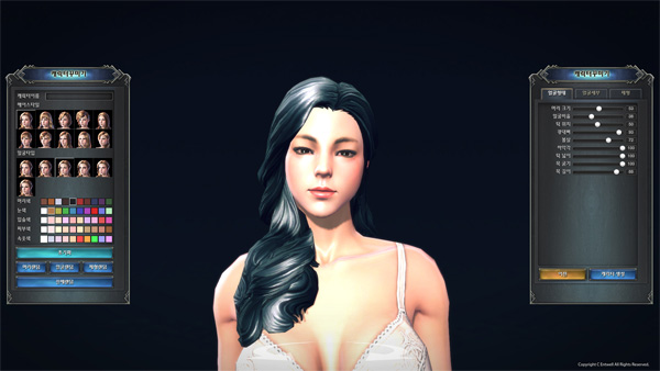 '코어온라인'은 블레이드앤소울이나 아키에이지 수준의 커스터마징을 제공하진 않지만 체형부터 얼굴의 세세한 설정까지 50여개 이상의 옵션을 제공하고 있다.