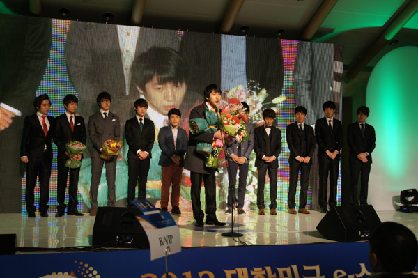 대한민국 e스포츠 대상 스타크래프트1과 스타크래프트2 각 부문에서 상을 받은 영광의 얼굴들. CJ엔투스는 스타1과 스타2 모두 최고 게임단상을 수상하는 영광을 안았다.